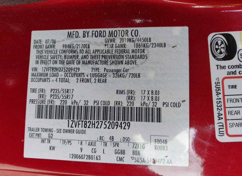 - VIN: 1ZVFT82H275209429