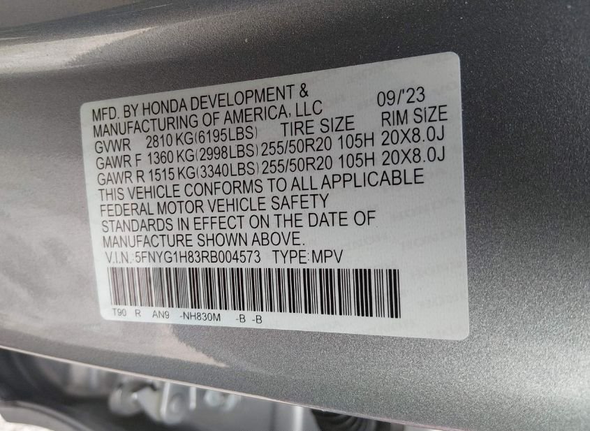 - VIN: 5FNYG1H83RB004573