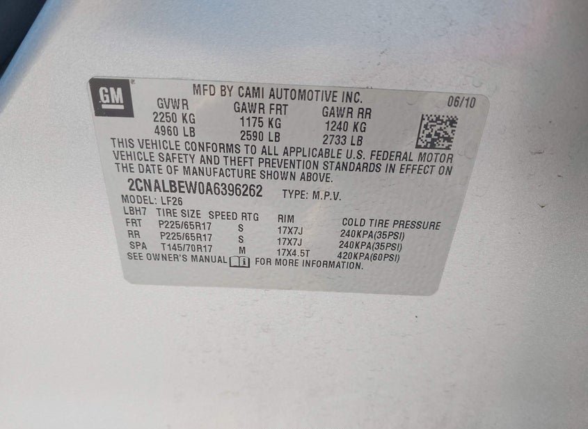 - VIN: 2CNALBEW0A6396262