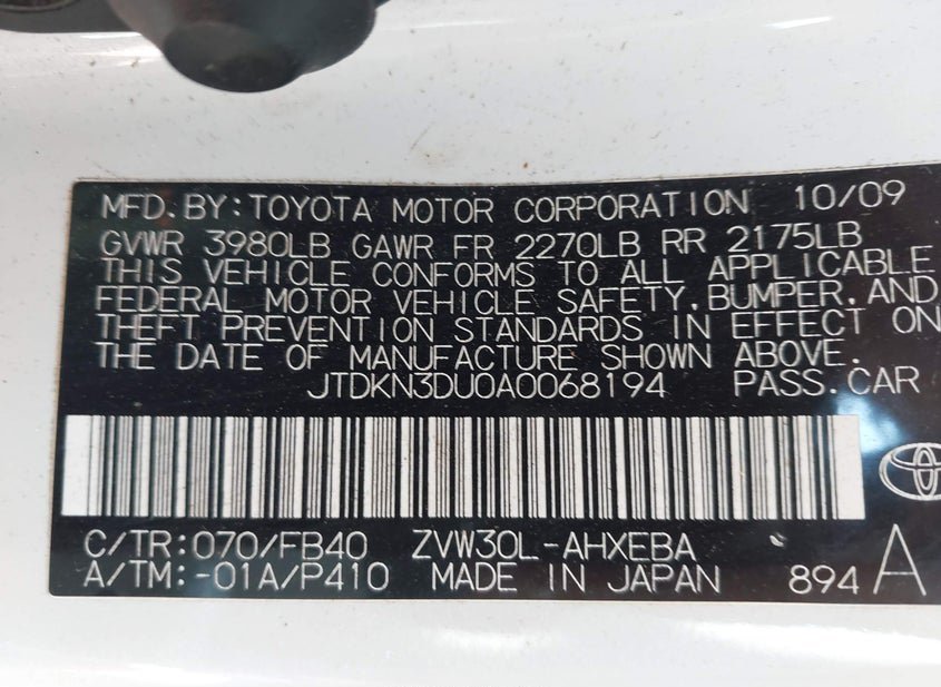 - VIN: JTDKN3DU0A0068194