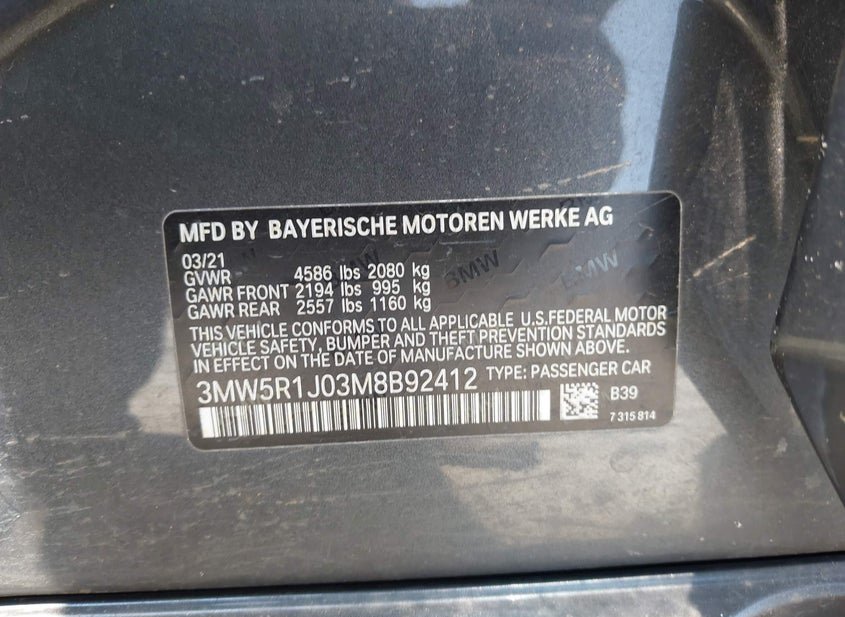 - VIN: 3MW5R1J03M8B92412