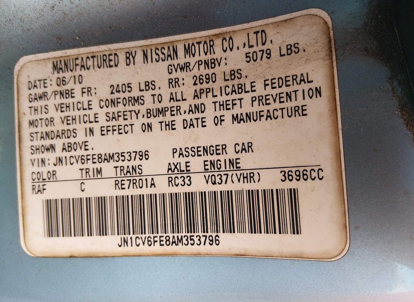 - VIN: JN1CV6FE8AM353796