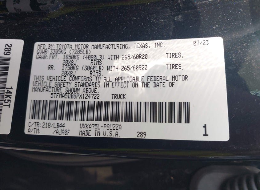 - VIN: 5TFMA5DB8PX124722