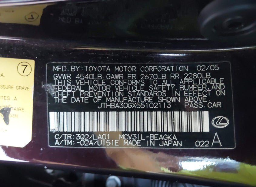 - VIN: JTHBA30GX55102113