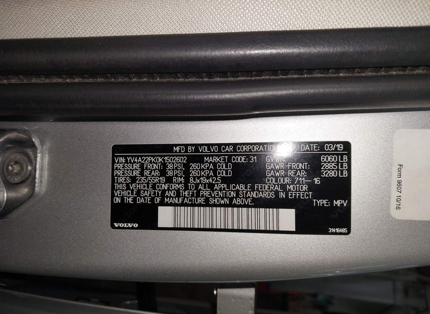 - VIN: YV4A22PK0K1502602