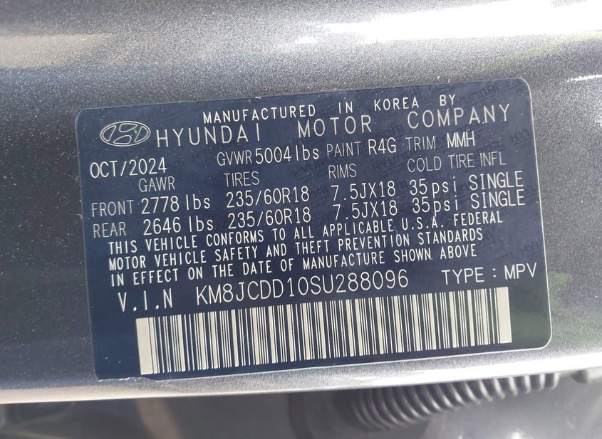 - VIN: KM8JCDD10SU288096