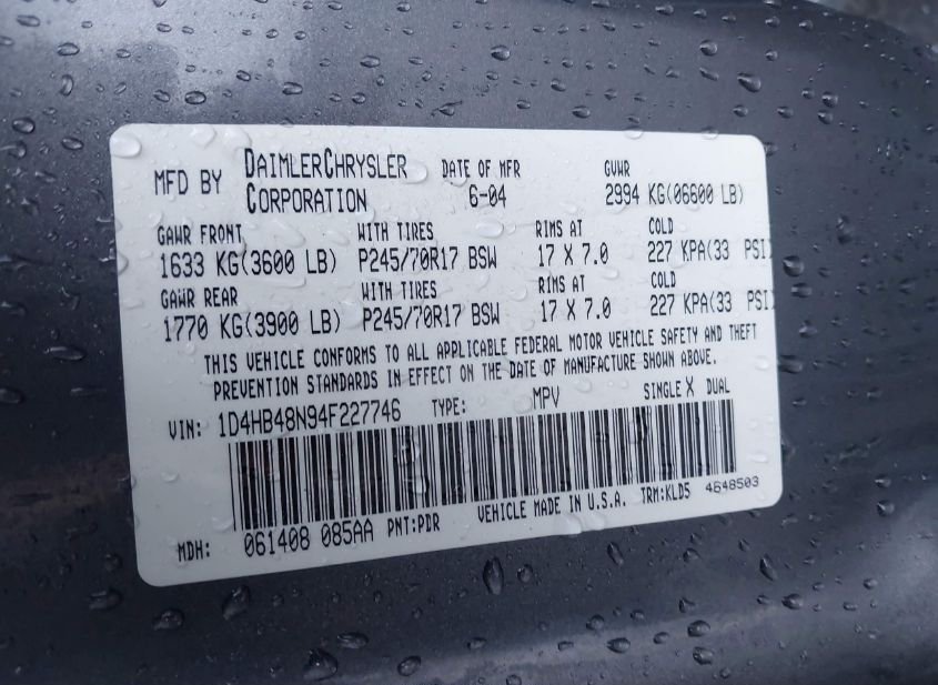 - VIN: 1D4HB48N94F227746
