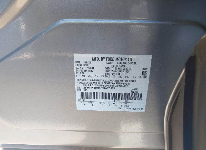 - VIN: 2FMPK4K95RBA75571