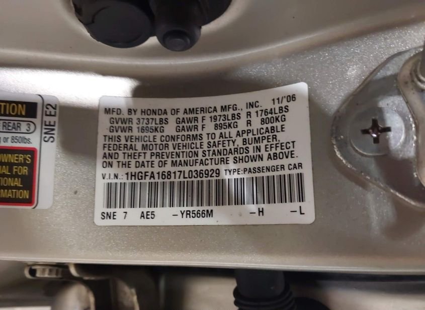 - VIN: 1HGFA16817L036929