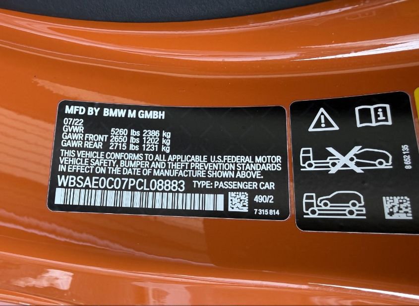 - VIN: WBSAE0C07PCL08883