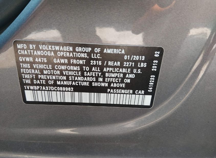 - VIN: 1VWBP7A37DC089962