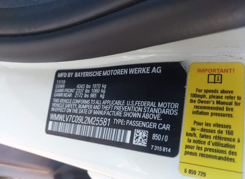 - VIN: WMWLV7C09L2M25581