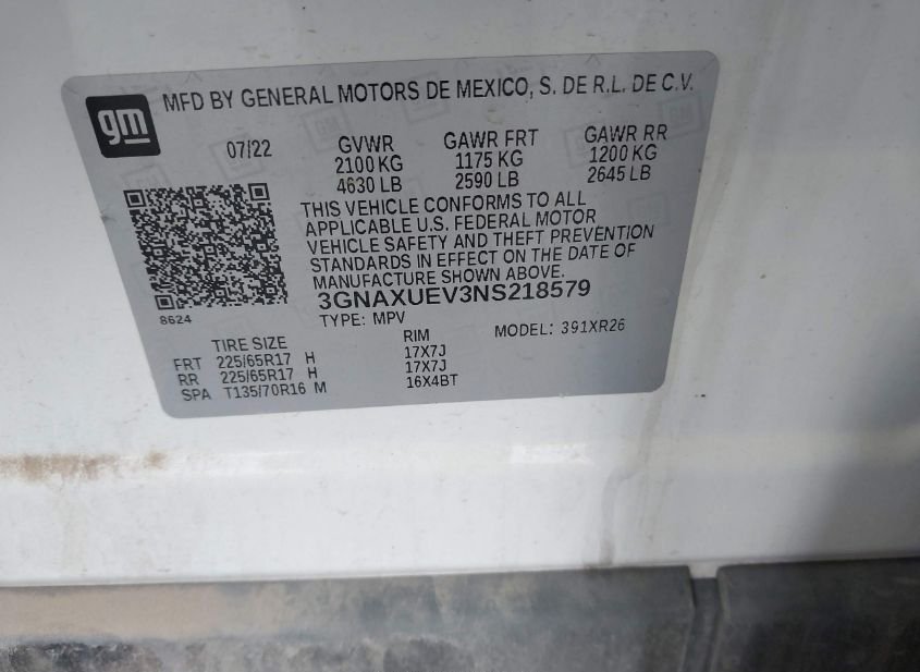 - VIN: 3GNAXUEV3NS218579