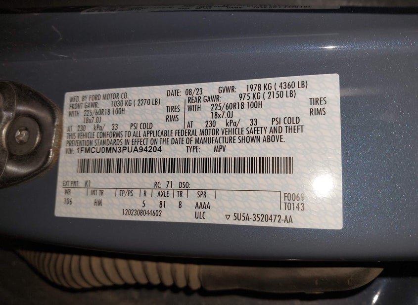 - VIN: 1FMCU0MN3PUA94204