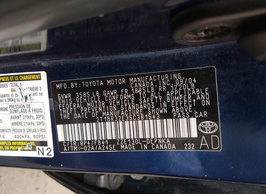 - VIN: 2T1BR32E35C381543