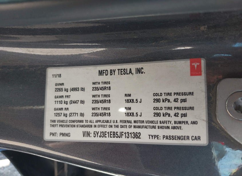 - VIN: 5YJ3E1EB5JF131362