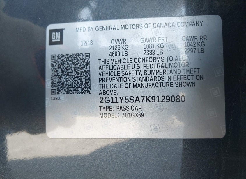 - VIN: 2G11Y5SA7K9129080