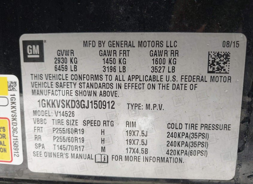 - VIN: 1GKKVSKD3GJ150912