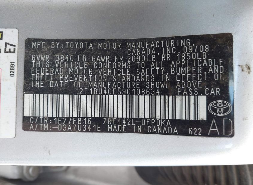 - VIN: 2T1BU40E59C108634