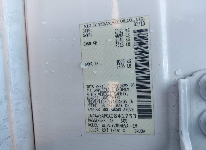 - VIN: 1N4AA5AP0AC841753