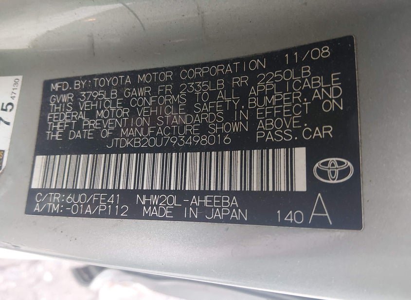 - VIN: JTDKB20U793498016