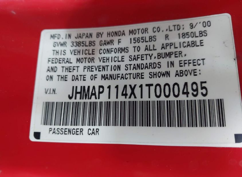 - VIN: JHMAP114X1T000495