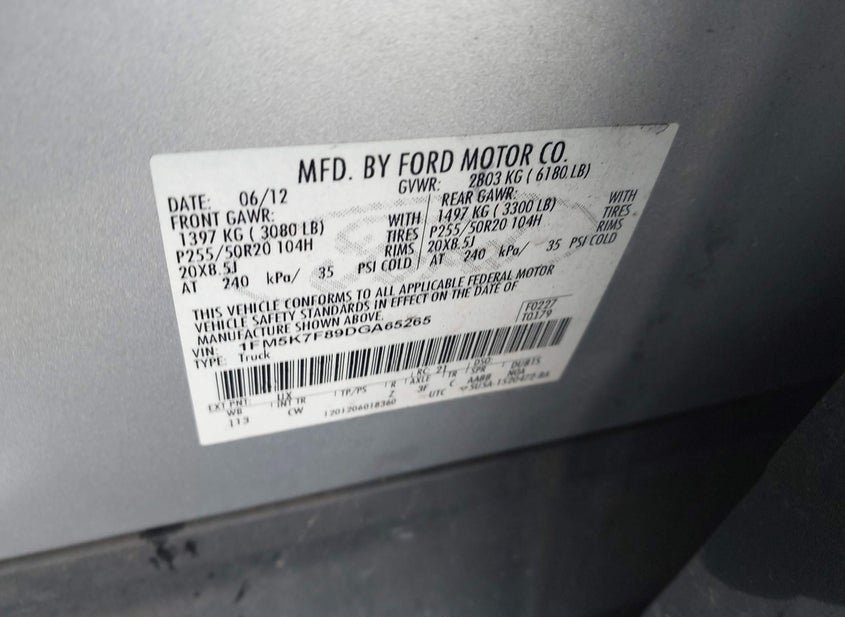 - VIN: 1FM5K7F89DGA65265