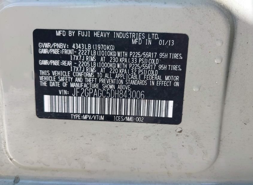 - VIN: JF2GPAGC5DH843006