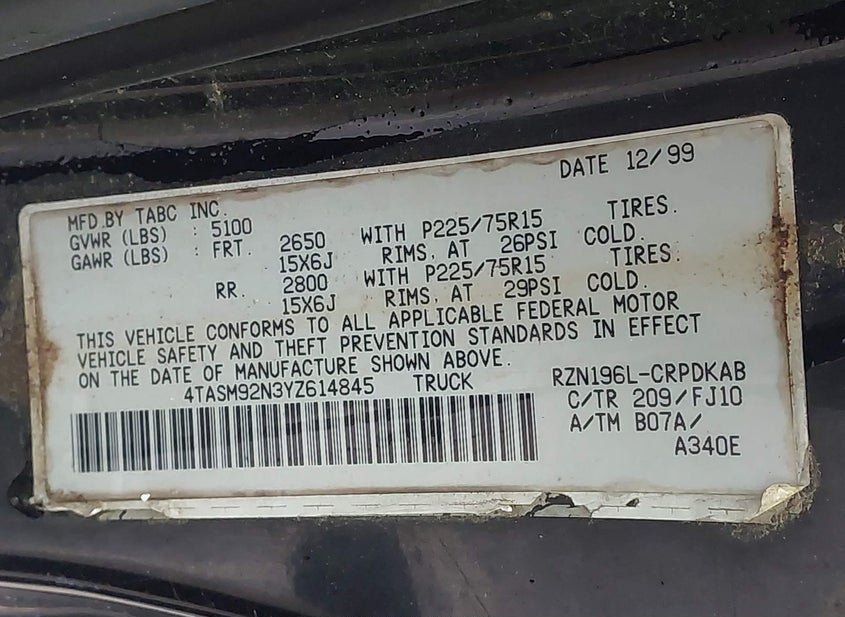 - VIN: 4TASM92N3YZ614845