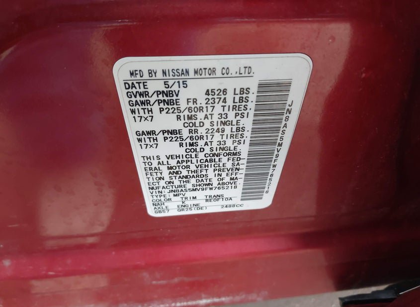 - VIN: JN8AS5MV9FW765218