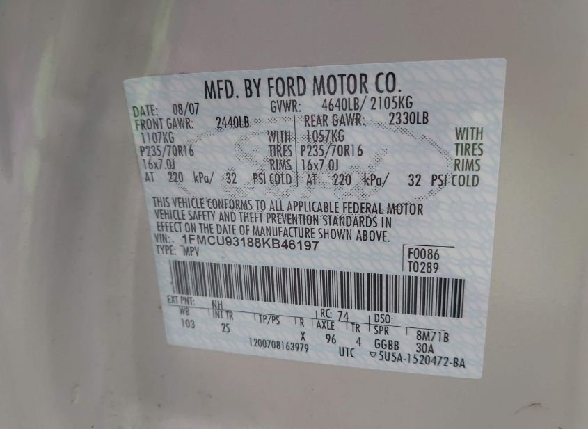 - VIN: 1FMCU93188KB46197