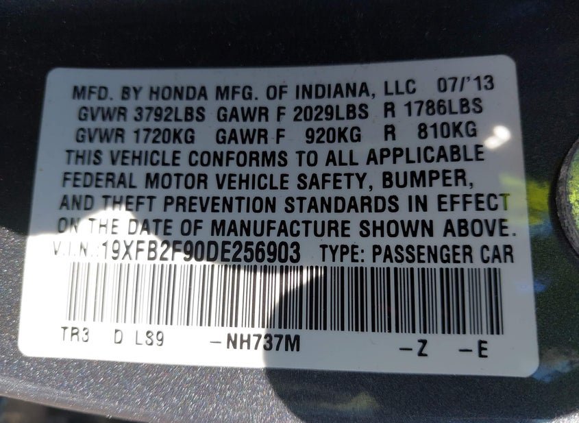 - VIN: 19XFB2F90DE256903