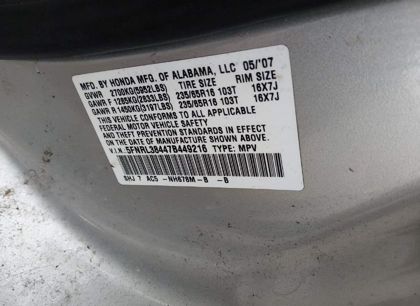 - VIN: 5FNRL38447B449216