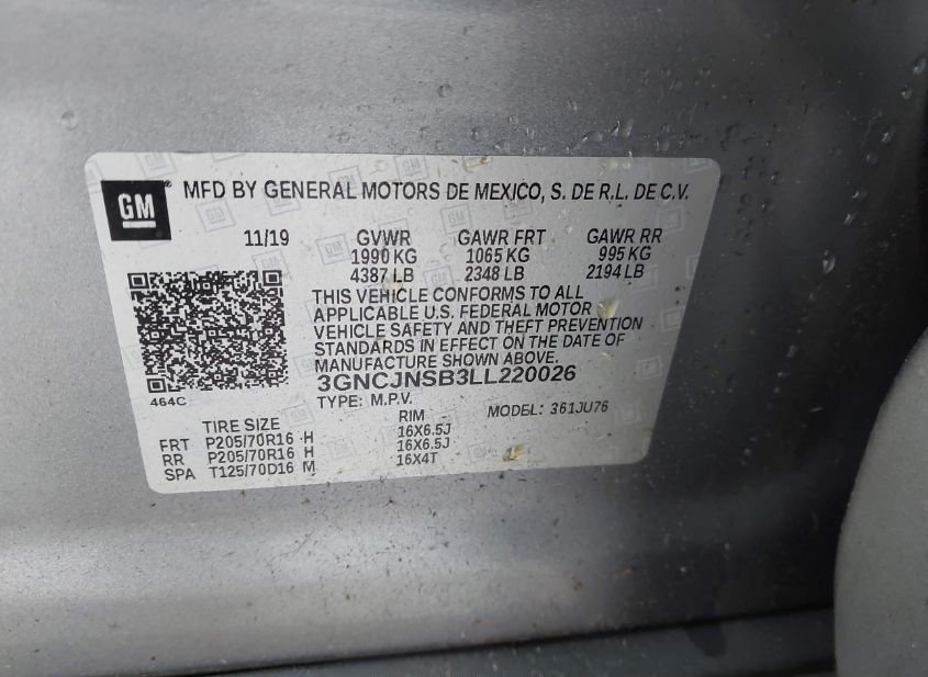 - VIN: 3GNCJNSB3LL220026