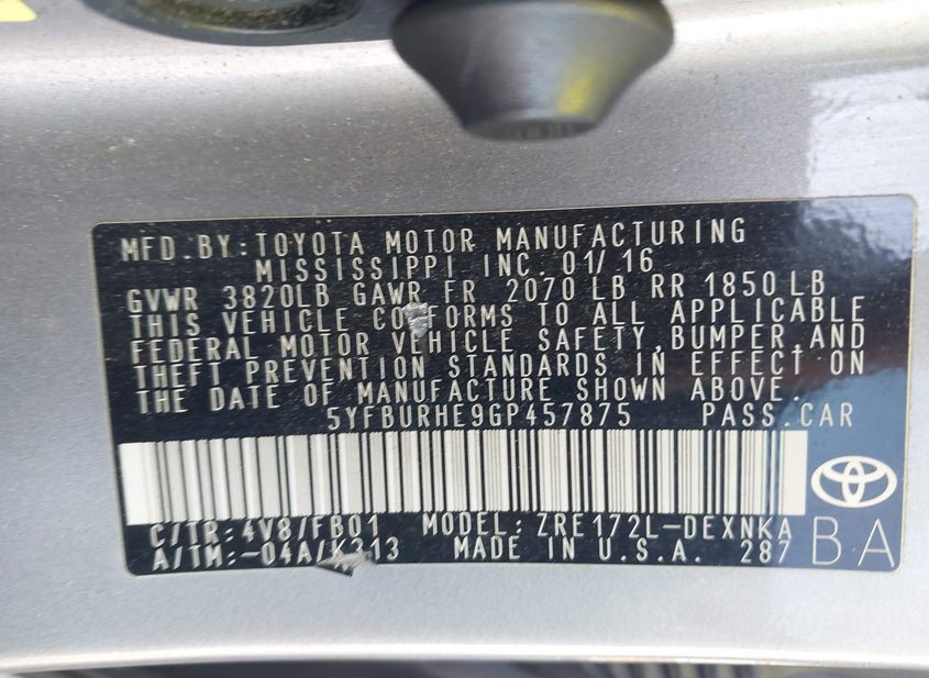 - VIN: 5YFBURHE9GP457875