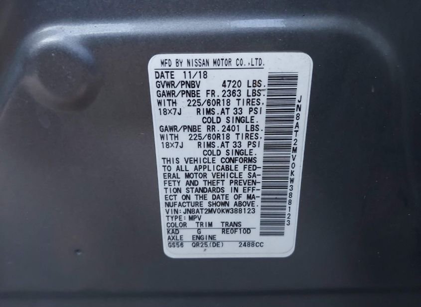 - VIN: JN8AT2MV0KW388123