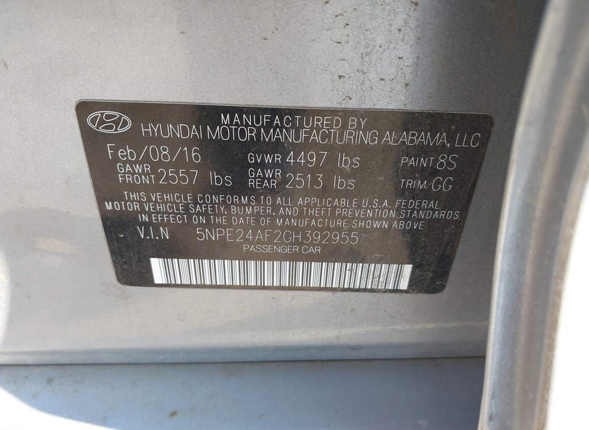 - VIN: 5NPE24AF2GH392955