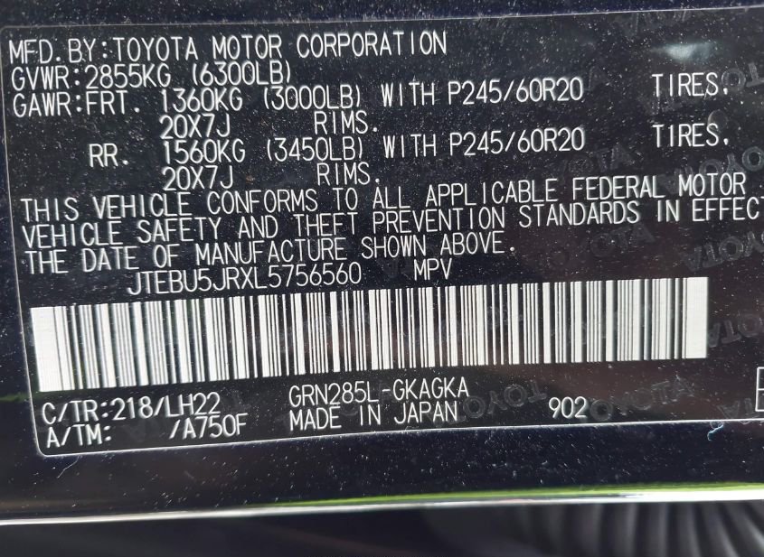 - VIN: JTEBU5JRXL5756560