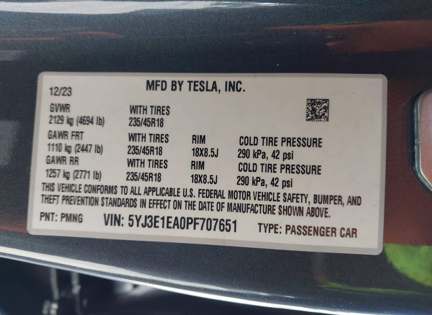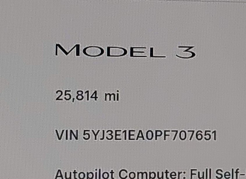 - VIN: 5YJ3E1EA0PF707651