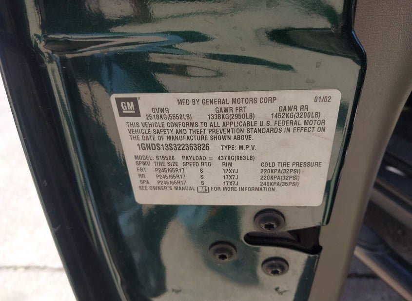 - VIN: 1GNDS13S322363826