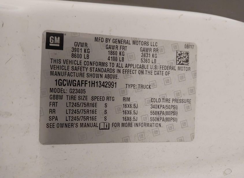 - VIN: 1GCWGAFF1H1342991