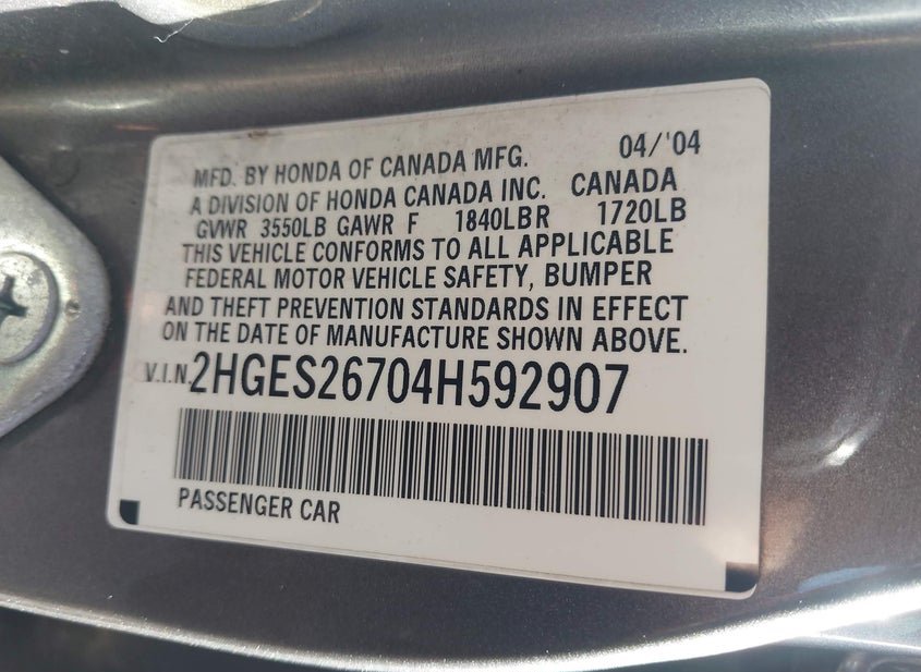 - VIN: 2HGES26704H592907