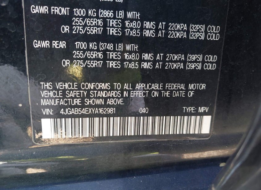 - VIN: 4JGAB54EXYA162981