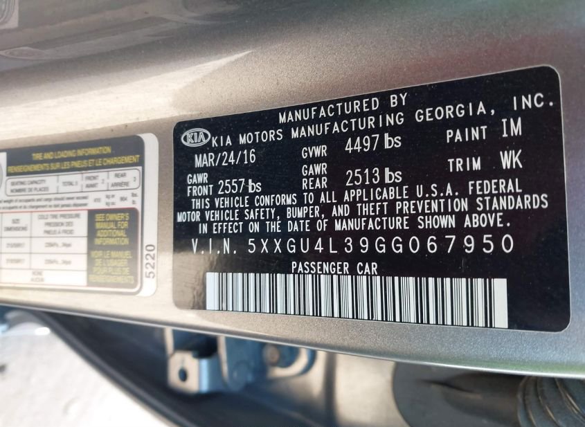 - VIN: 5XXGU4L39GG067950