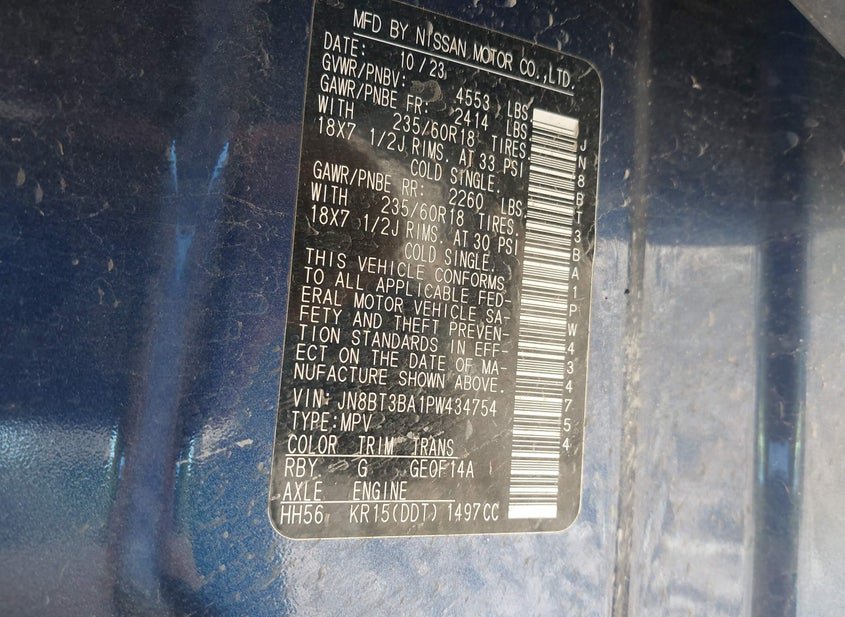 - VIN: JN8BT3BA1PW434754