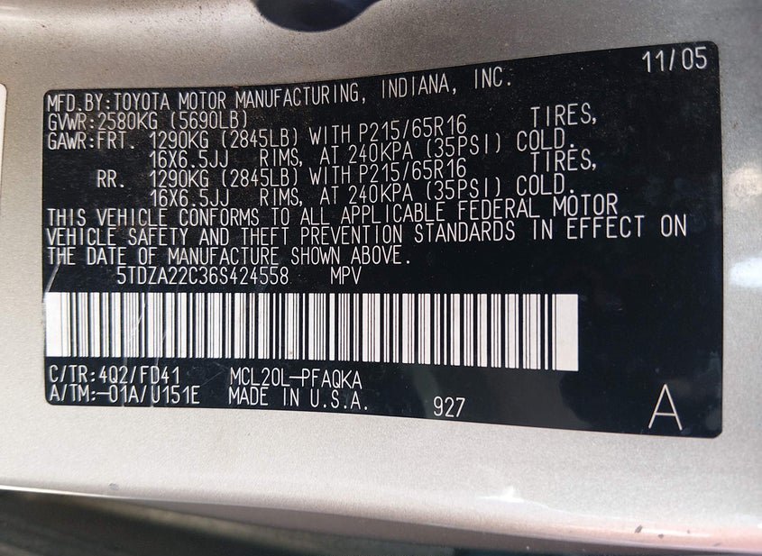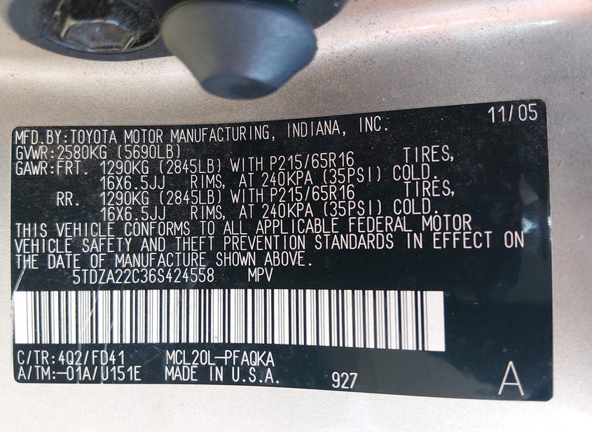 - VIN: 5TDZA22C36S424558