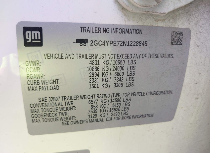 - VIN: 2GC4YPE72N1228845