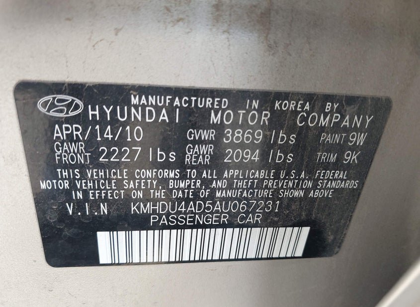 - VIN: KMHDU4AD5AU067231