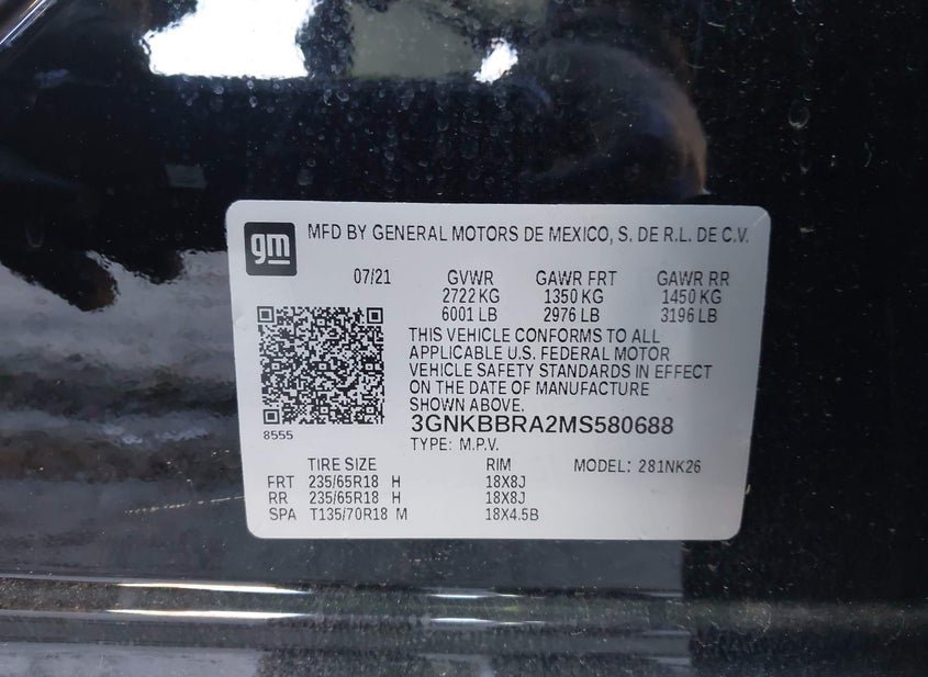 - VIN: 3GNKBBRA2MS580688