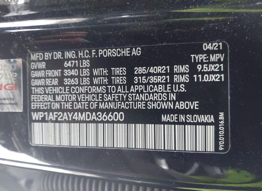 - VIN: WP1AF2AY4MDA36600